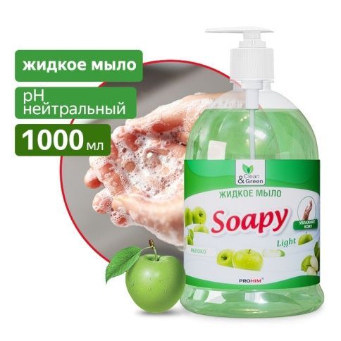 Мыло жидкое 1л с дозатором Soapy Light Яблоко Clean&Green 1/6