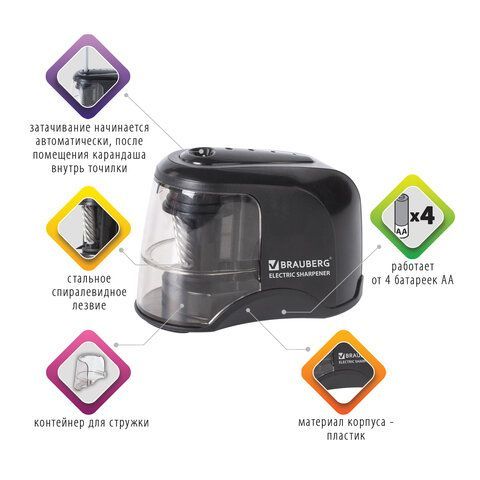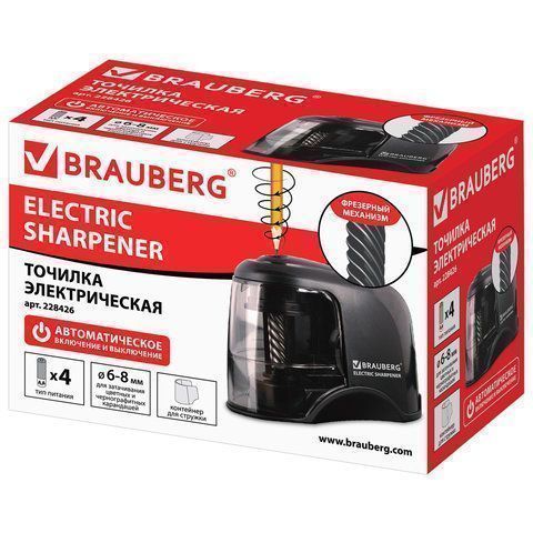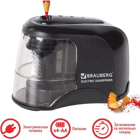 —Точилка электрическая питание от 4 батареек АА спиралевидное лезвие JET Brauberg 1/12