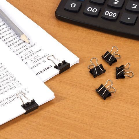 Зажимы для бумаг 15мм на 45л (12шт) черные в картонной коробке Brauberg 1/12 оптом и в розницу в Самаре купить