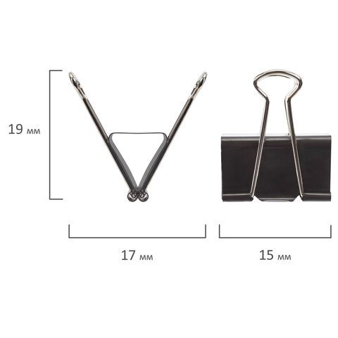 Зажимы для бумаг 15мм на 45л (12шт) черные в картонной коробке Brauberg 1/12