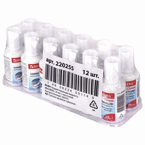Корректирующая жидкость штрих 20мл флакон с кисточкой и мет. шариком Classic BRAUBERG 1/12 оптом и в розницу в Самаре купить
