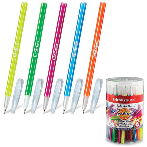 Ручка шариковая синяя узел 0,6мм линия 0,32мм корп цветн.ассорти ErichKrause Coctail 1/60/1440