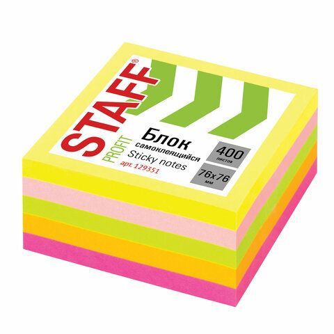Блок самоклеящийся 76х76мм 400л 5цветов неон STAFF 1/12/96 оптом и в розницу в Самаре купить