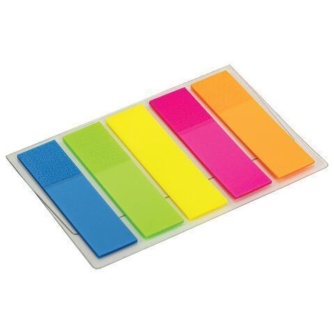 Закладки клейкие пластиковые 45х12мм 5цв.х20л неон STAFF 1/48