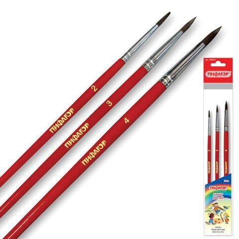 Кисти 3шт пони круглая № 2,3,4 Школьник ПИФАГОР 1/12/288
