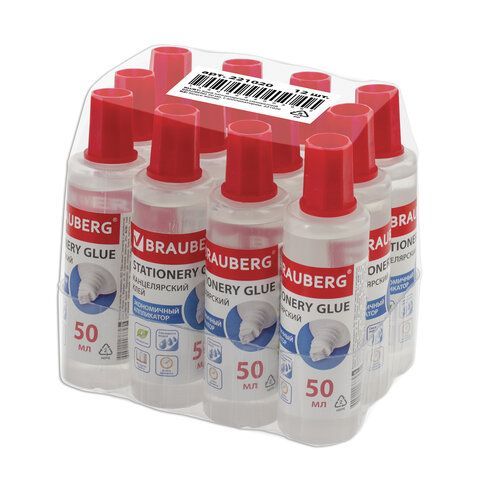 —Клей канцелярский силикатный 50мл BRAUBERG с аппликатором 1/12/432