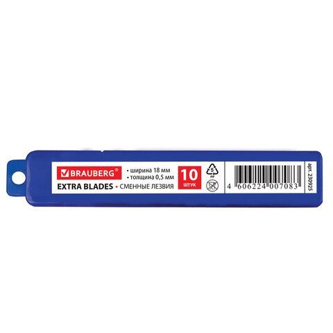 —Лезвия для ножей 18мм 10шт толщина лезвия 0,5мм в пл. пенале BRAUBERG 1/10