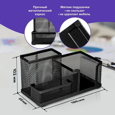 —Подставка-органайзер BRAUBERG Germanium метал 3 секции 102х186х95мм черная 1/1