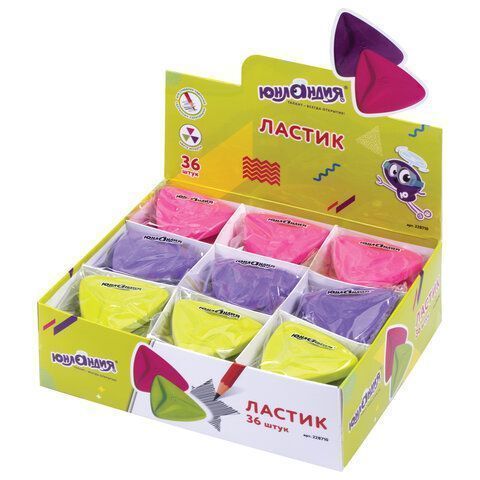 —Ластик 52х50х15 мм ЮНЛАНДИЯ "Звездочка", цвет ассорти, 228710 1/36