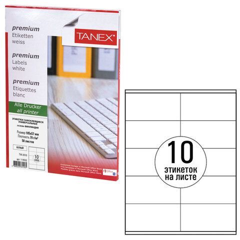 Этикетка самоклеящаяся 105х57мм 50л 10этикеток белая TANEX 1/20 (клиент)