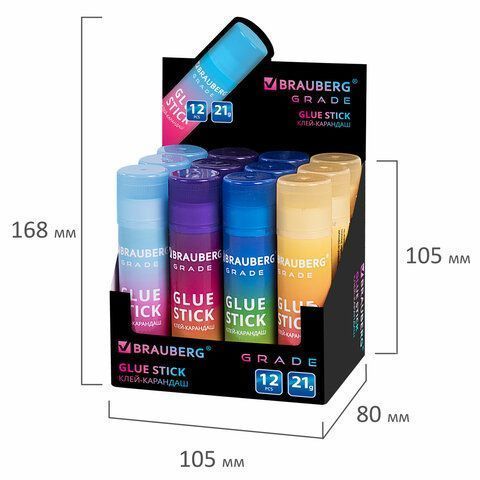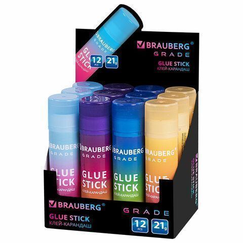Клей-карандаш 21г BRAUBERG Grade PVP ассорти 1/12/648