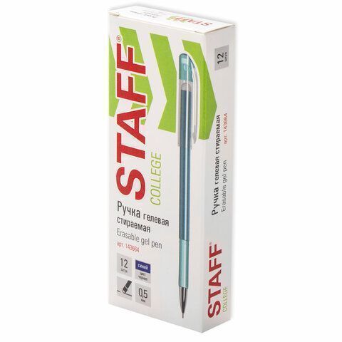 —Ручка гелевая синяя стираемая узел 0,5мм линия письма 0,38мм STAFF College EGP-664 1/12