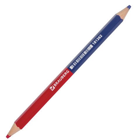 Карандаш двухцветный КРАСНО-СИНИЙ УТОЛЩЕННЫЙ BRAUBERG заточенный, грифель 4,0 мм (вывод)