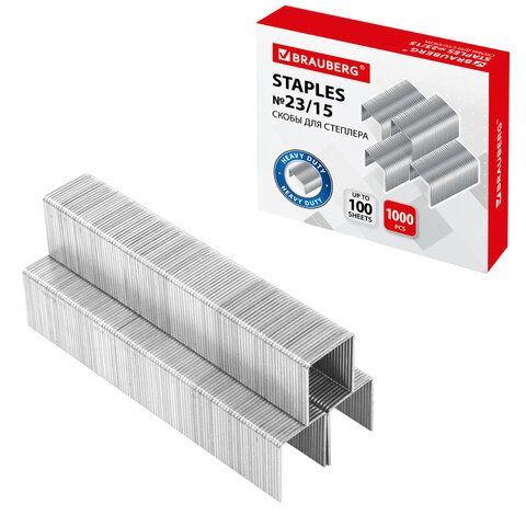 Скобы №23/15 1000 шт от 40 до 100л BRAUBERG 1/10/120
