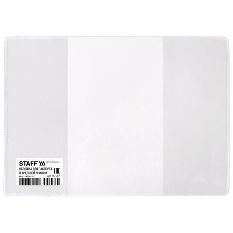 Обложка для паспорта и трудовой книжки, 90*125 мм, ПВХ, прозрачная, STAFF, 237582 (клиент)
