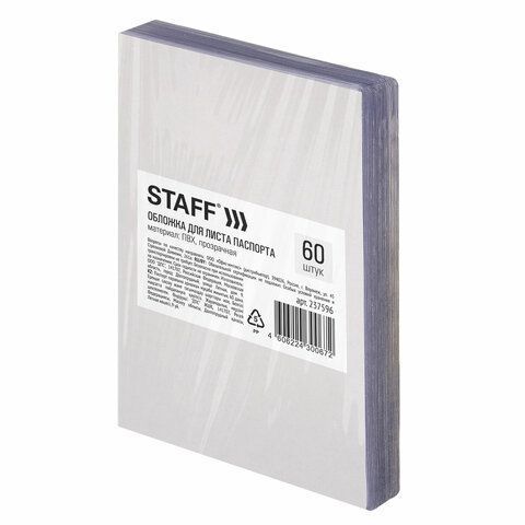 Обложка для листа паспорта 60шт, STAFF, прозрачная оптом и в розницу в Самаре купить