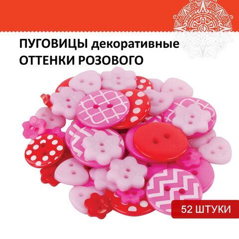 Пуговицы декоративные ОТТЕНКИ РОЗОВОГО, пластик, 52шт., ассорти, ОСТРОВ СОКРОВИЩ (вывод)