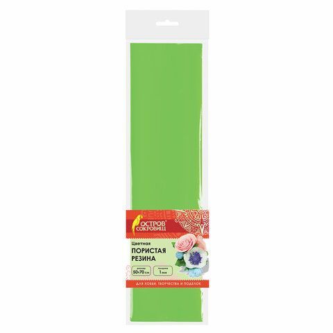 Пористая резина (фоамиран) для творчества, СВЕТЛО-ЗЕЛЕНАЯ, 50*70 см, 1 мм, ОСТРОВ СОКРОВИЩ, 661682