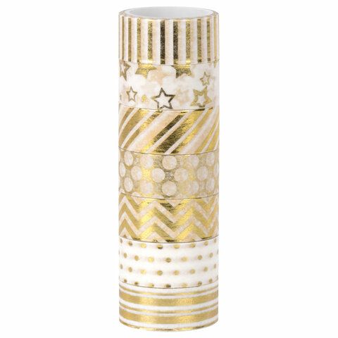 Клейкие Washi-ленты 7шт 3м ЗОЛОТИСТЫЕ с фольгой оптом и в розницу в Самаре купить