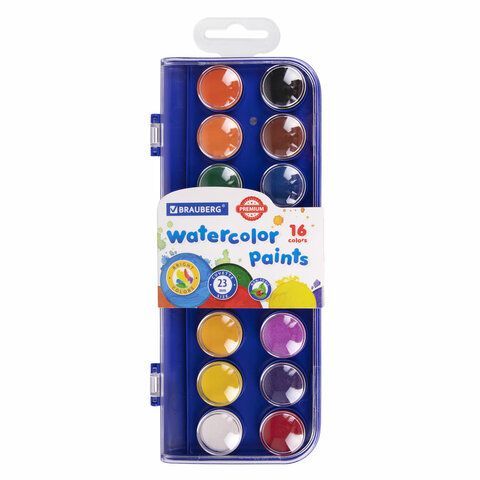 —Краски акварельные 16цв круглые кюветы 23 мм пенал BRAUBERG PREMIUM 12/144