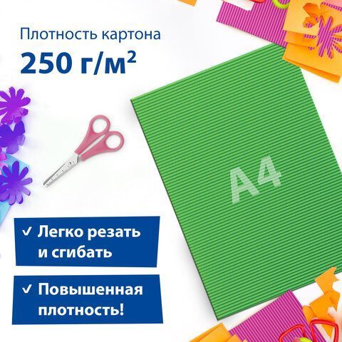 —Цветной картон А4 5л 5цв 250 г/м2 гофрированный ОСТРОВ СОКРОВИЩ 1/100