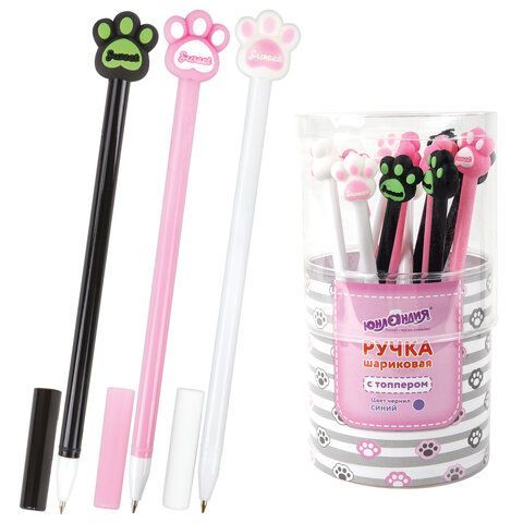 Ручка с топпером шариковая ЮНЛАНДИЯ Лапка корпус ассорти СИНЯЯ узел 0,7мм 1/12 оптом и в розницу в Самаре купить