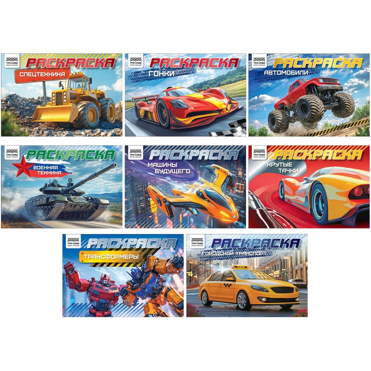 —Книжка раскраска А5 10л ТРИ СОВЫ Автомобили 1/8/160