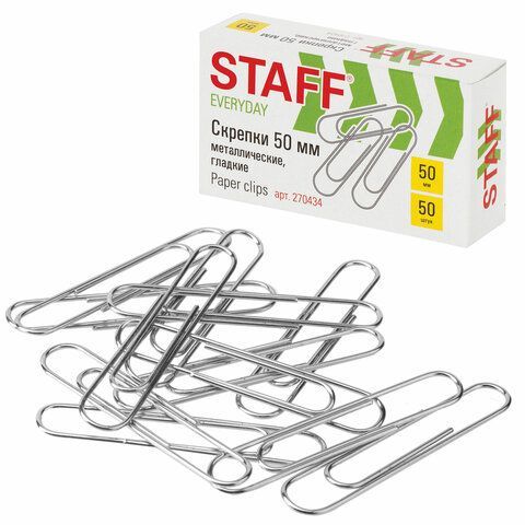 Скрепки 50мм 100шт металлические STAFF EVERYDAY 1/8/80 оптом и в розницу в Самаре купить