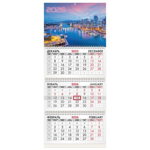 Календарь квартальный 2026 3 блока на 3-х гребнях с бегунком Город BRAUBERG 1/40