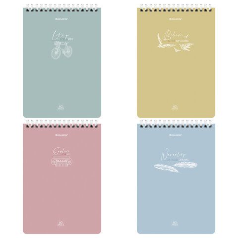 Блокнот 60л А5 гребень картон клетка BRAUBERG Pastel 1/4/80