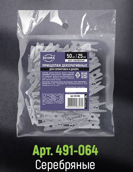 —Прищепки декоративные деревянные серебряные 25мм 50шт 1/50