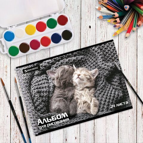—Альбом для рисования 24л А4 гребень обложка картон BRAUBERG Питомцы 1/10/40