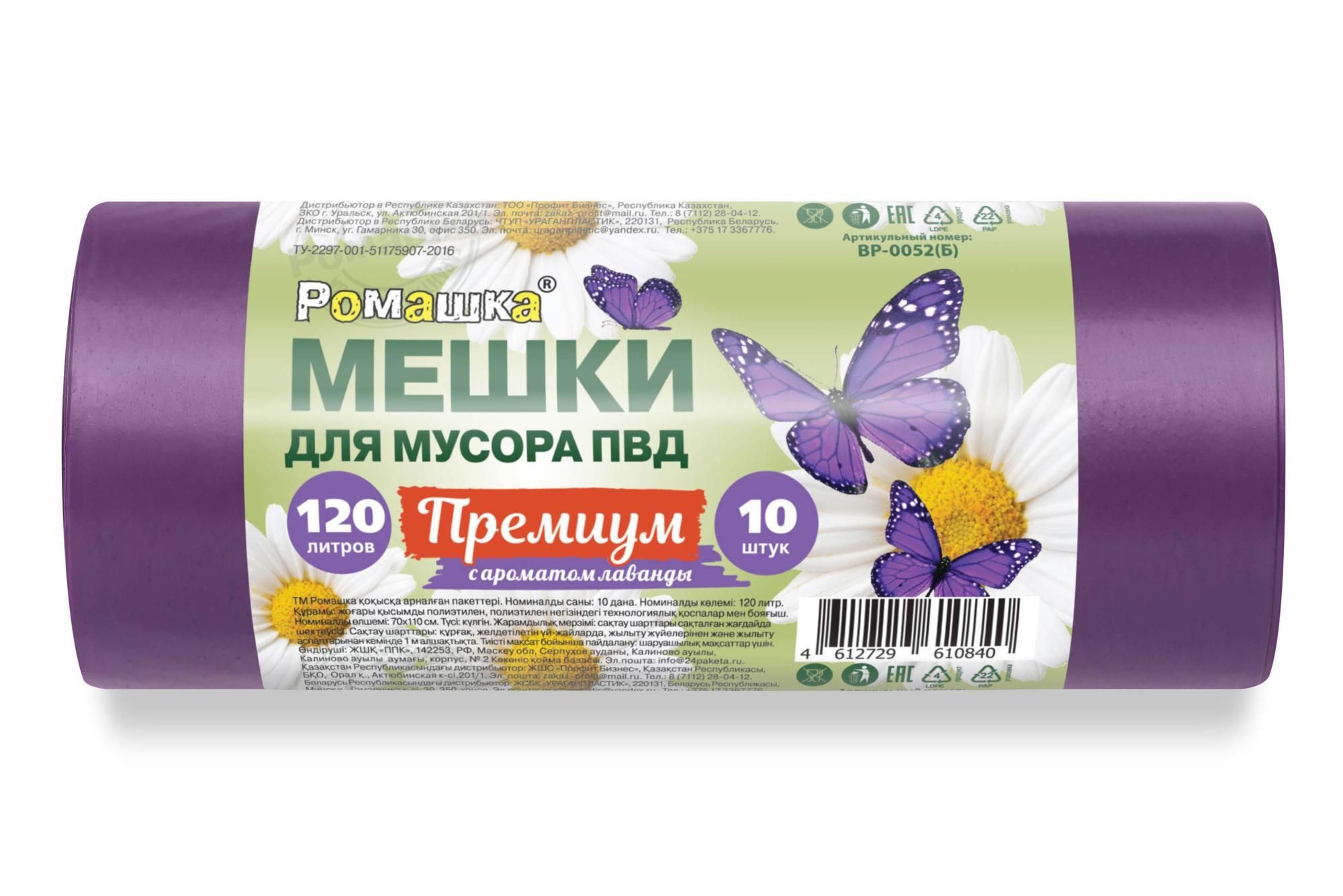 Мешок для мусора 120л рулон ПВД (70х110)-35 фиолетовый (лаванда) ПРЕМИУМ 50г Ромашка (10шт) 1/12 – купить хозяйственные товары в розницу с доставкой
