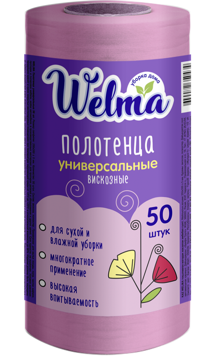 Салфетки вискозные рулон (25х35) WELMA универсальные розовые (50шт) 1/12 – купить хозяйственные товары в розницу с доставкой