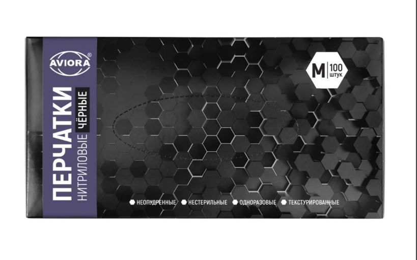 —Перчатки смотровые нитриловые неопудренные Aviora черные M 4гр 50/500