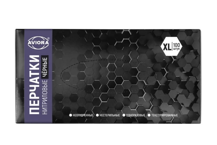 —Перчатки смотровые нитриловые неопудренные Aviora черные XL 4 гр 50/500
