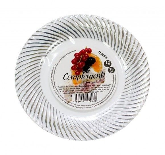 Тарелка пластиковая d-180 белая с серебряной волной Complement ламинированная (12шт) 1/20 купить в Самаре с доставкой - УПАК.РФ
