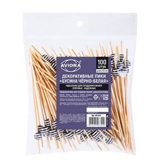 Пика для канапе Бусина черно-белая 12см (100шт) 1/50 купить в Самаре с доставкой - УПАК.РФ