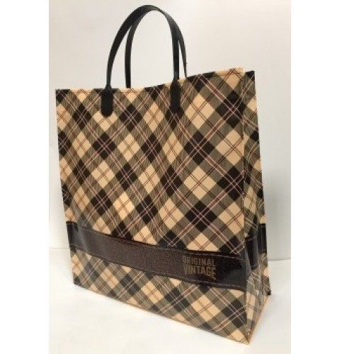 Пакет с пластмассовыми ручками (30х30+10) объемный Клетка ориг 10/50