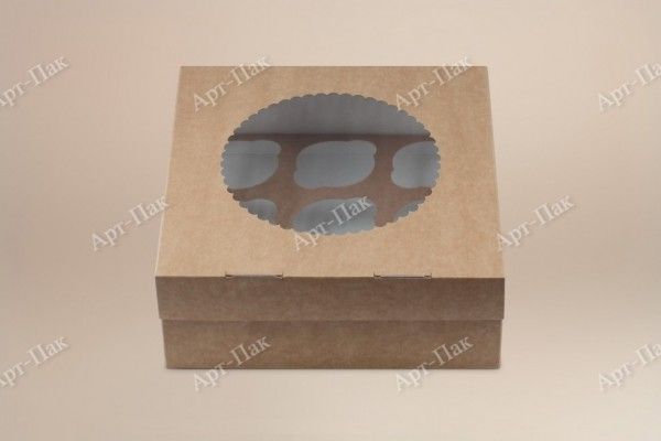 —Коробка для капкейков/маффинов с окном 250х250х100мм на 9шт крафт 50/100