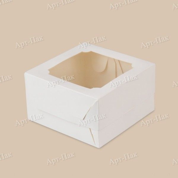 Коробка для бенто торта с окном 160х160х80мм картонная белая 50/150 купить оптом и розницу с доставкой в Самаре