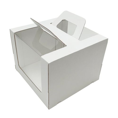 Коробка для торта с круговым окном с ручками 260х260х200мм микрогофрокартон белая 25/25 купить оптом и розницу с доставкой в Самаре
