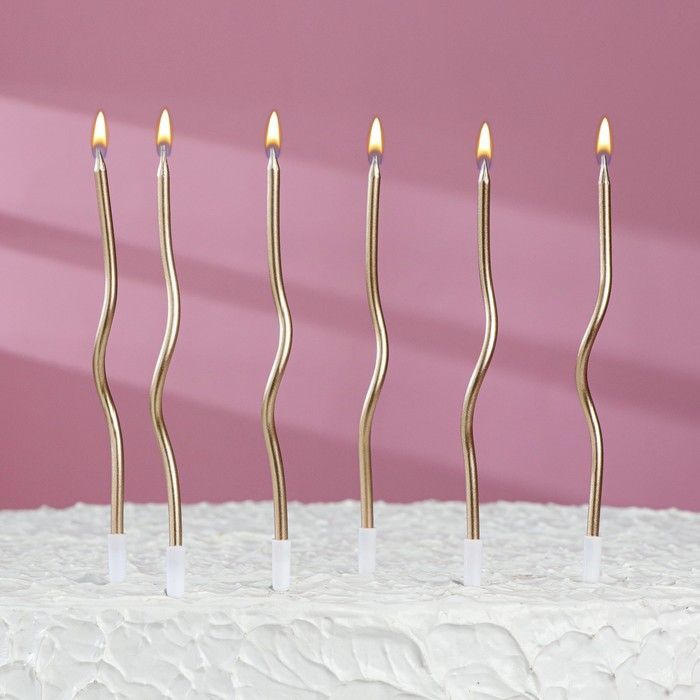 Свеча для торта Серпантин витые шампань 6шт 1/400