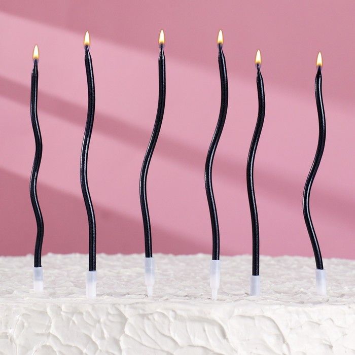 —Свеча для торта Серпантин витые мокрый асфальт 6шт 1/400