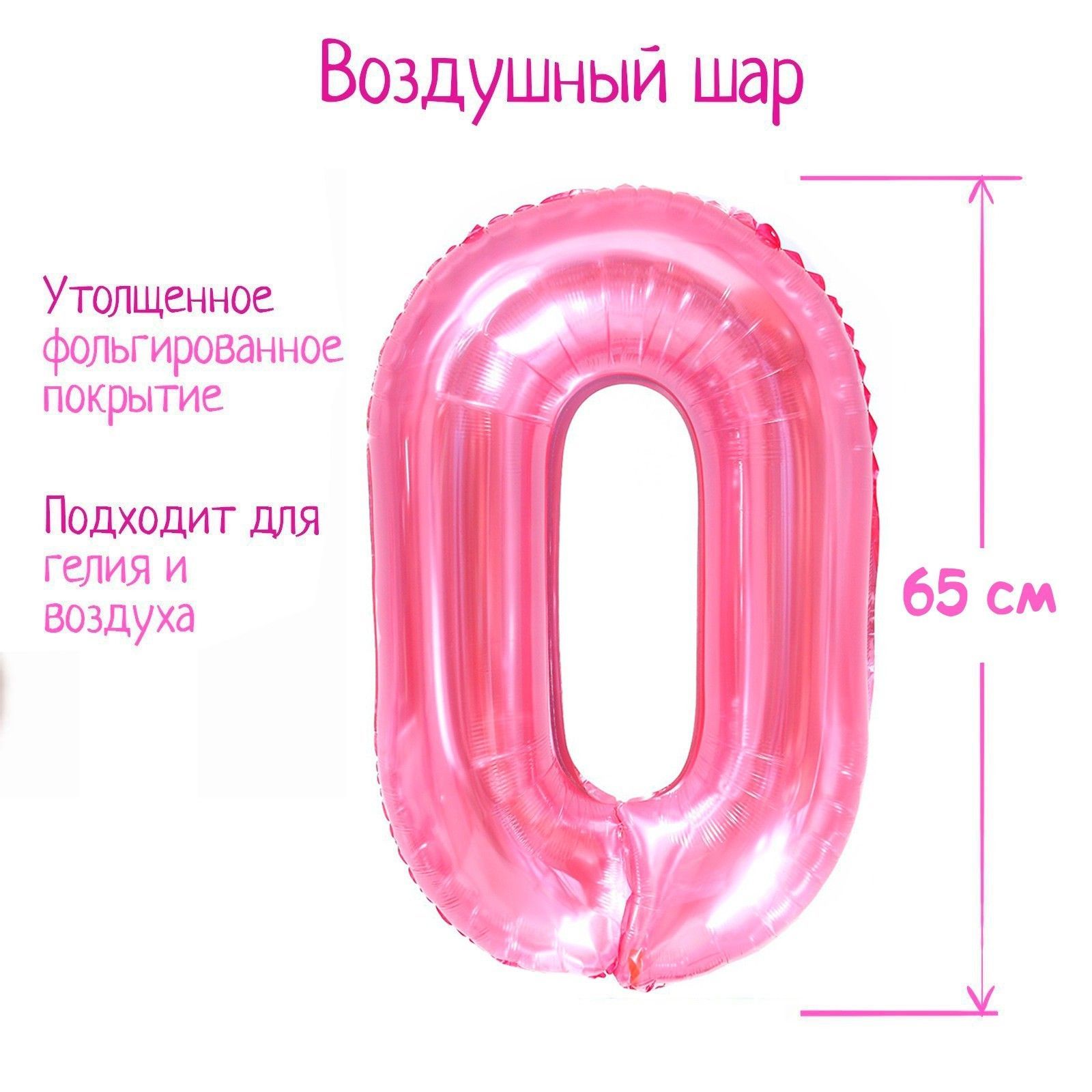 Шар фольгированный Цифра 0 65см прозрачно-розовый 1/25/600 оптом и в розницу в Самаре, цены в каталоге с доставкой