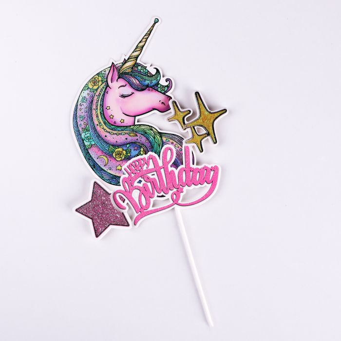 —Топпер для торта Единорог розовый 1/10