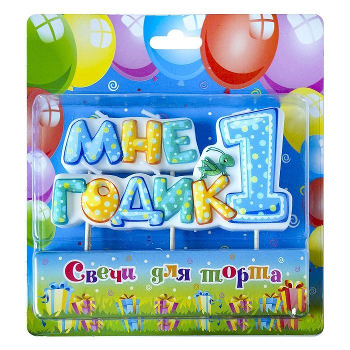 Свеча для торта на шпажке Мне 1 годик 1/10
