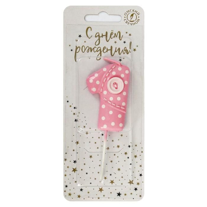 Свеча для торта с пуговкой 1 розовая 1/30 оптом и в розницу в Самаре, цены в каталоге с доставкой
