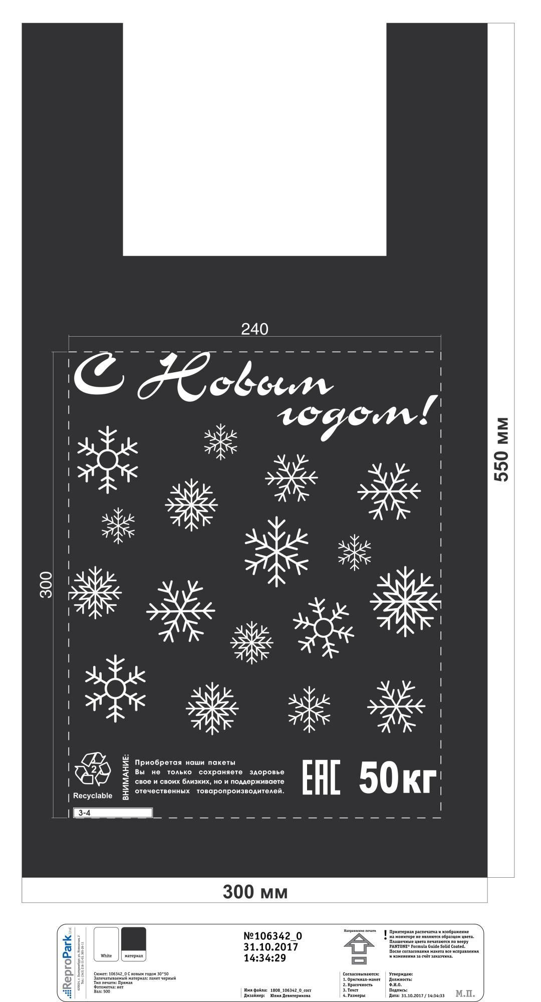 НГ Майка (30+15)х55- 25 мкм черная Снежинка МП 100/1000